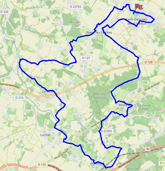 Direction Nieul puis La Clisse, Luchat, Varzay et prÚs avoir coupé la voie de chemin de fer de Royan, retour par Pessines.